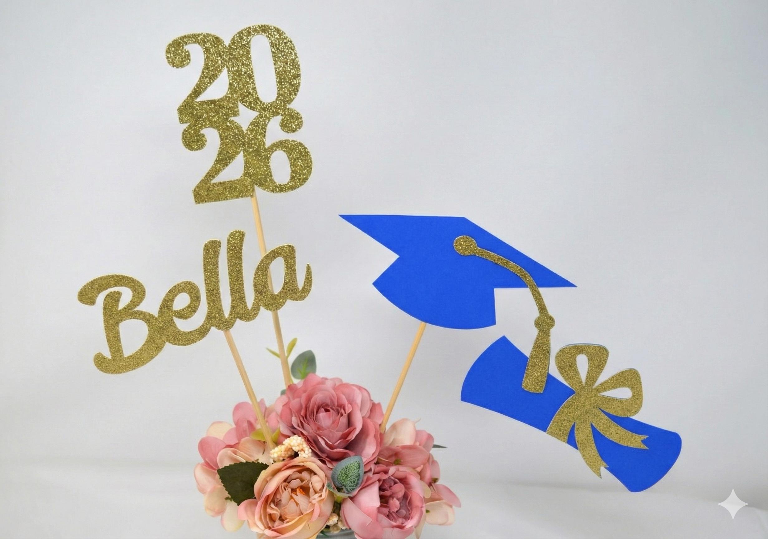 You will receive a grad cap and diploma stick, year 2026 stick and custom name.