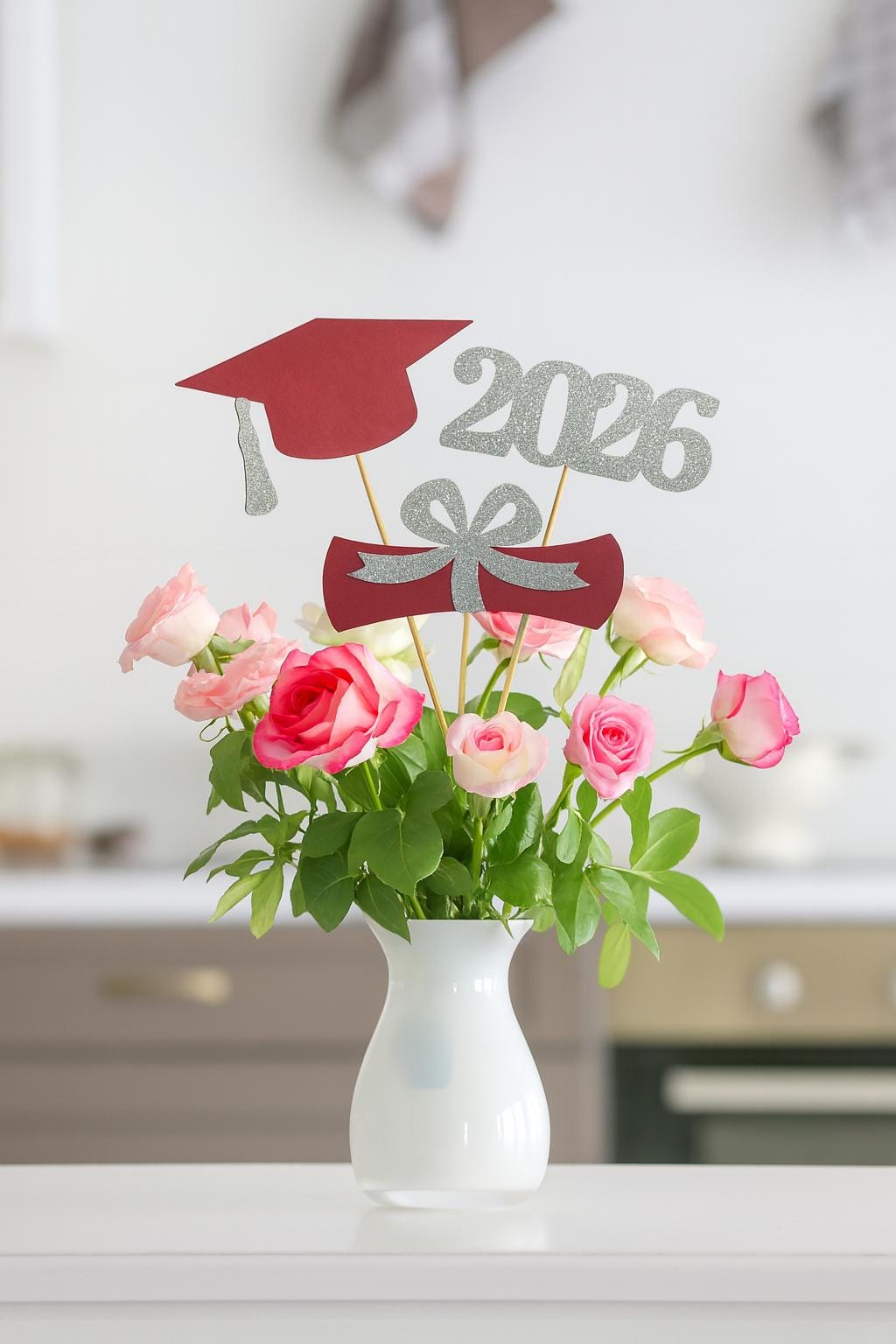 We got so many compliments on these! We put them in small vases with babies breath. Perfect graduation party decor!