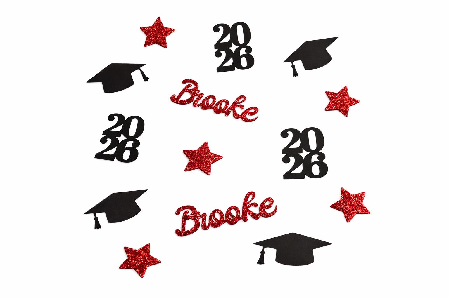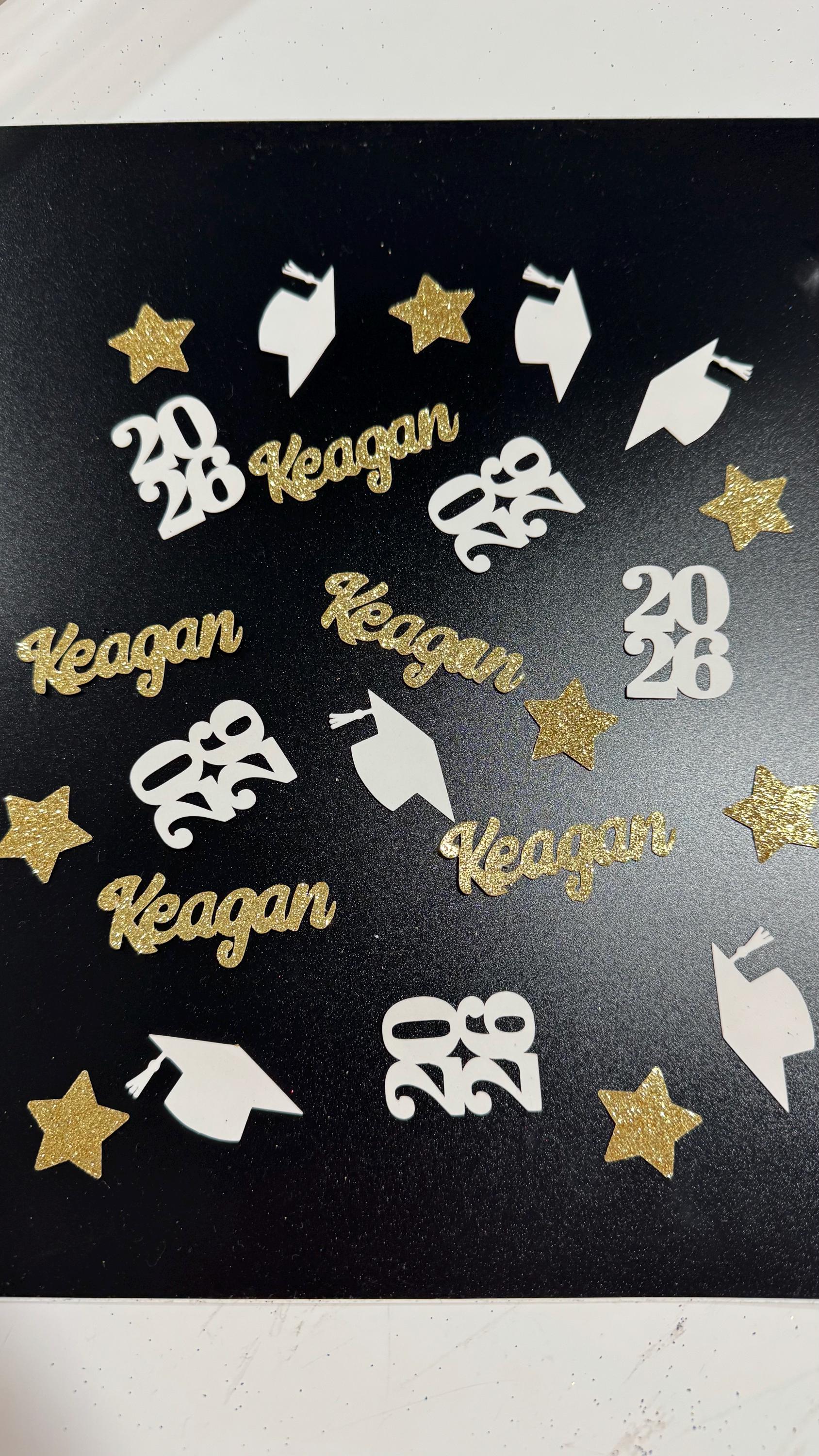 Make your graduation party shine with custom glitter name confetti designed especially for the Class of 2026!