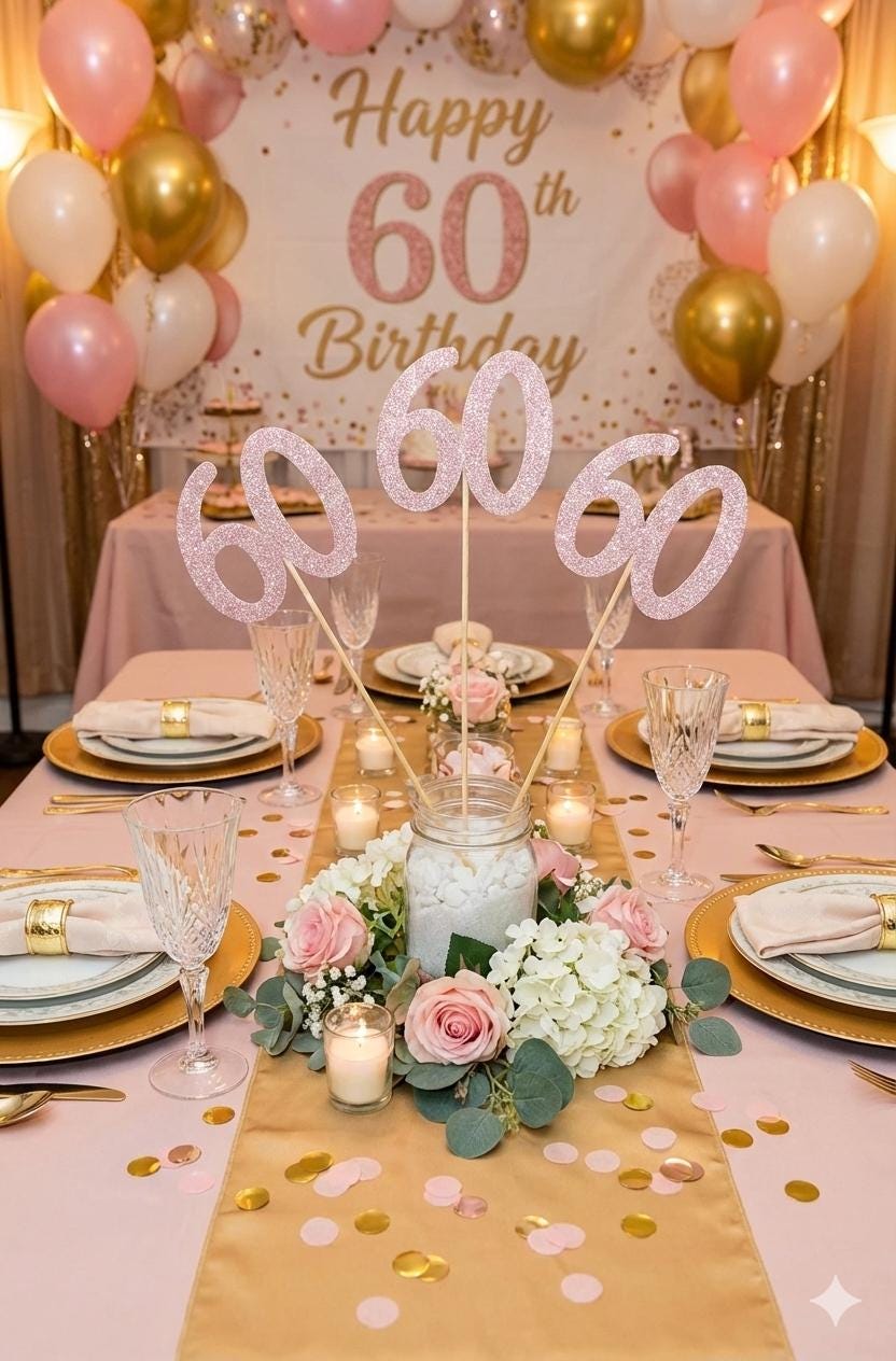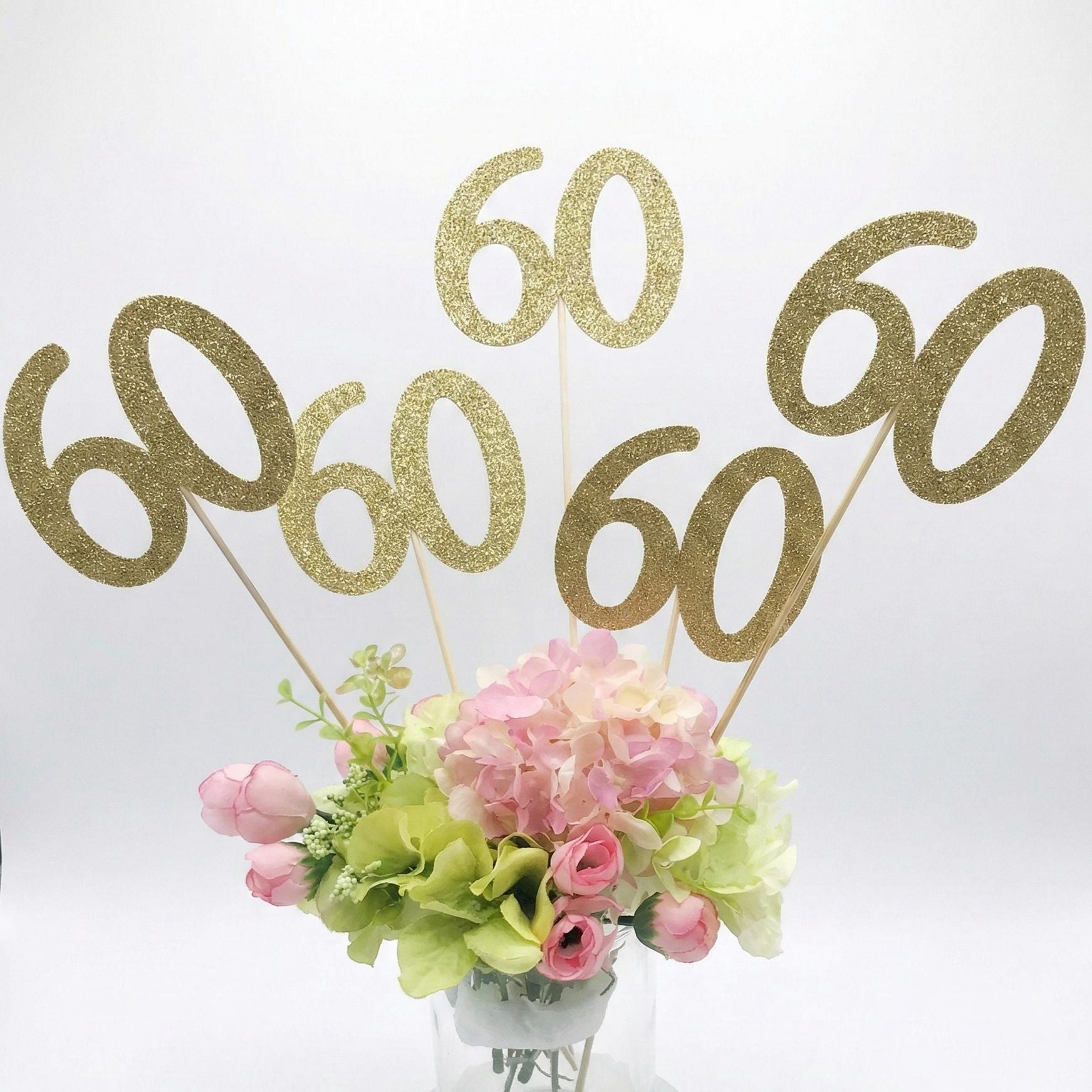 Set of 3 sticks, 60th Birthday Party Centerpiece STICK" perfect for a Birthday, or Anniversary. They look beautiful sticking out of a floral arrangement or standing alone in a vase.
