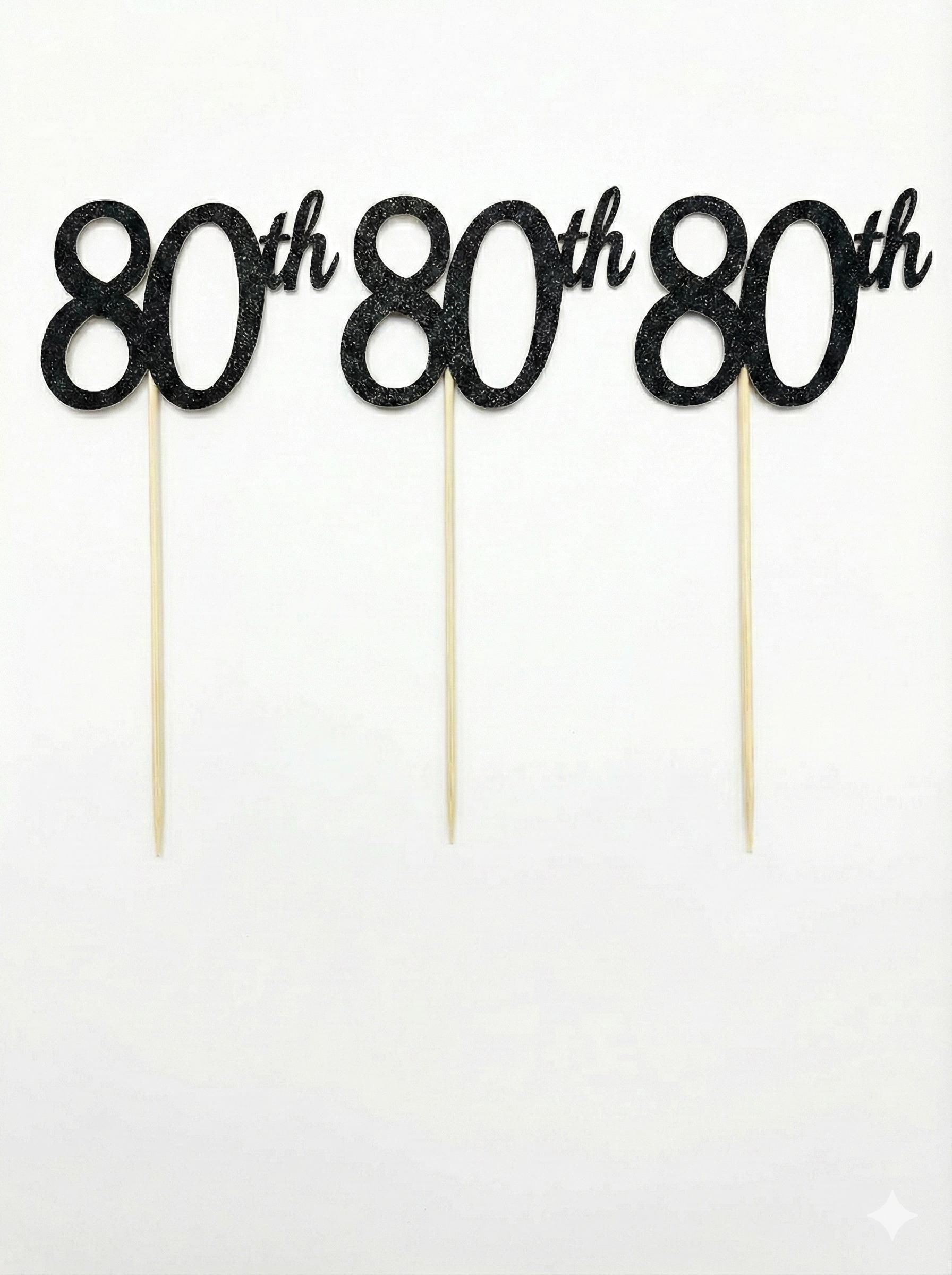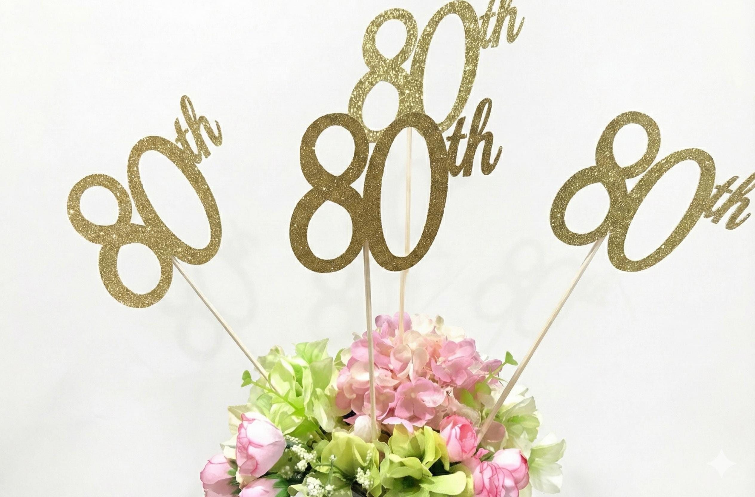 Set of 3 sticks, 80th Birthday Party Centerpiece STICK"