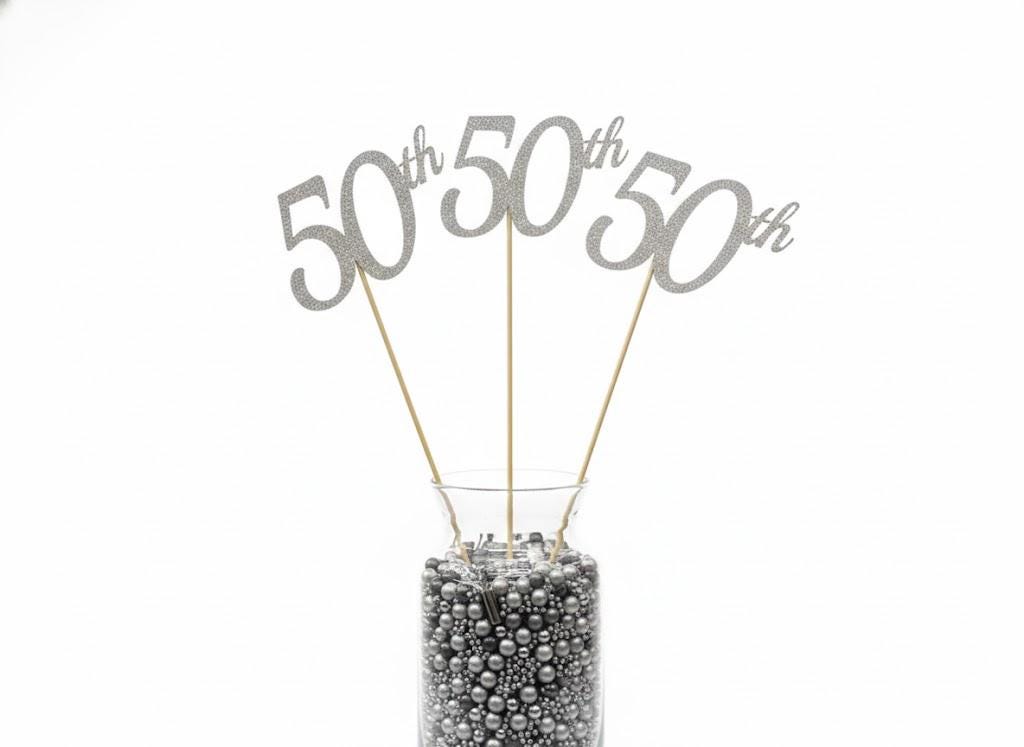 50th Birthday Party Centerpiece STICK" perfect for a Birthday, or Anniversary. They look beautiful sticking out of a floral arrangement or standing alone in a vase.