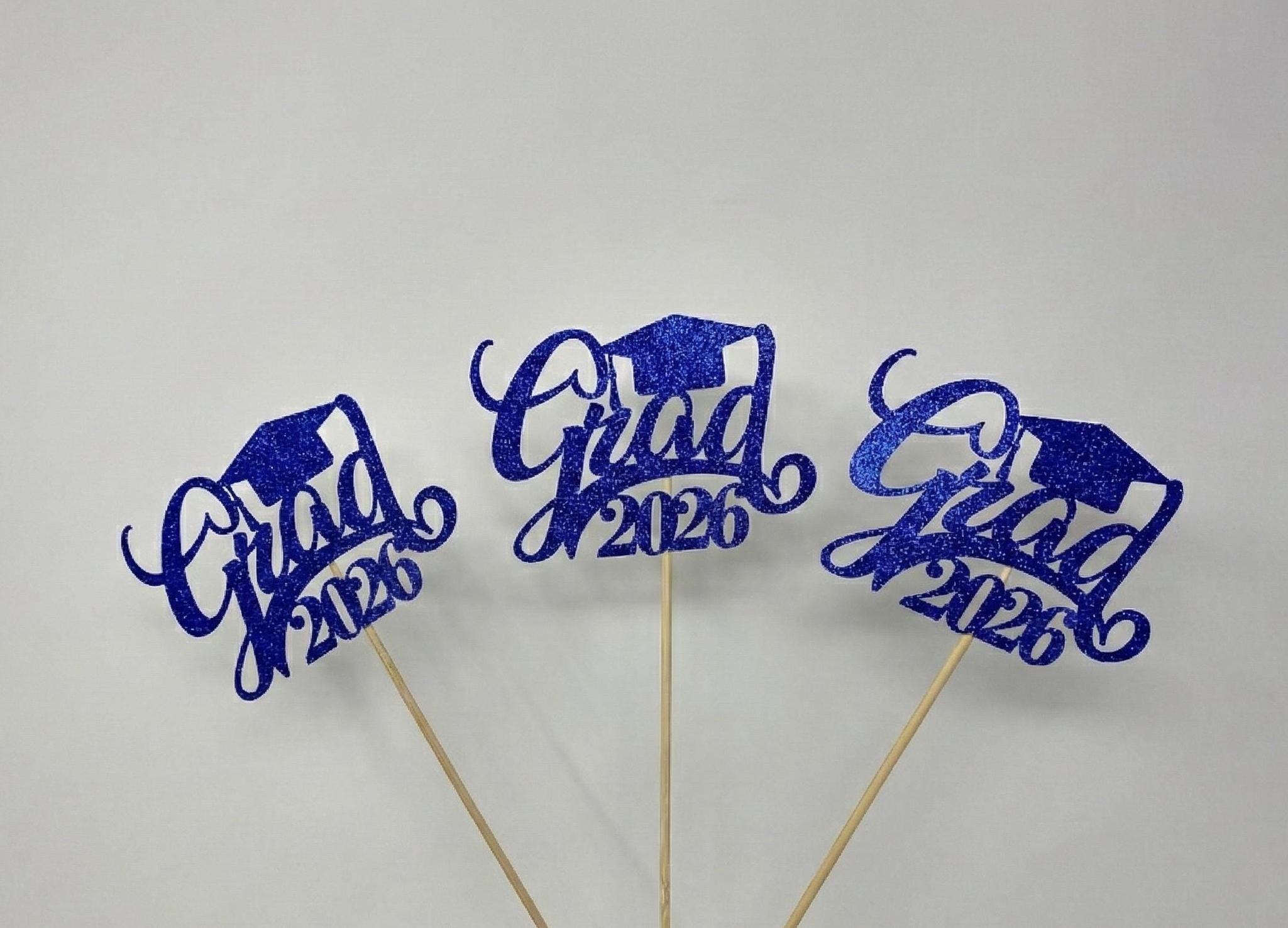 Grad 2026 centerpiece stick. This can be made in ANY YEAR so if you have a class Reunion Year, write down in "Notes to Seller the year you want.