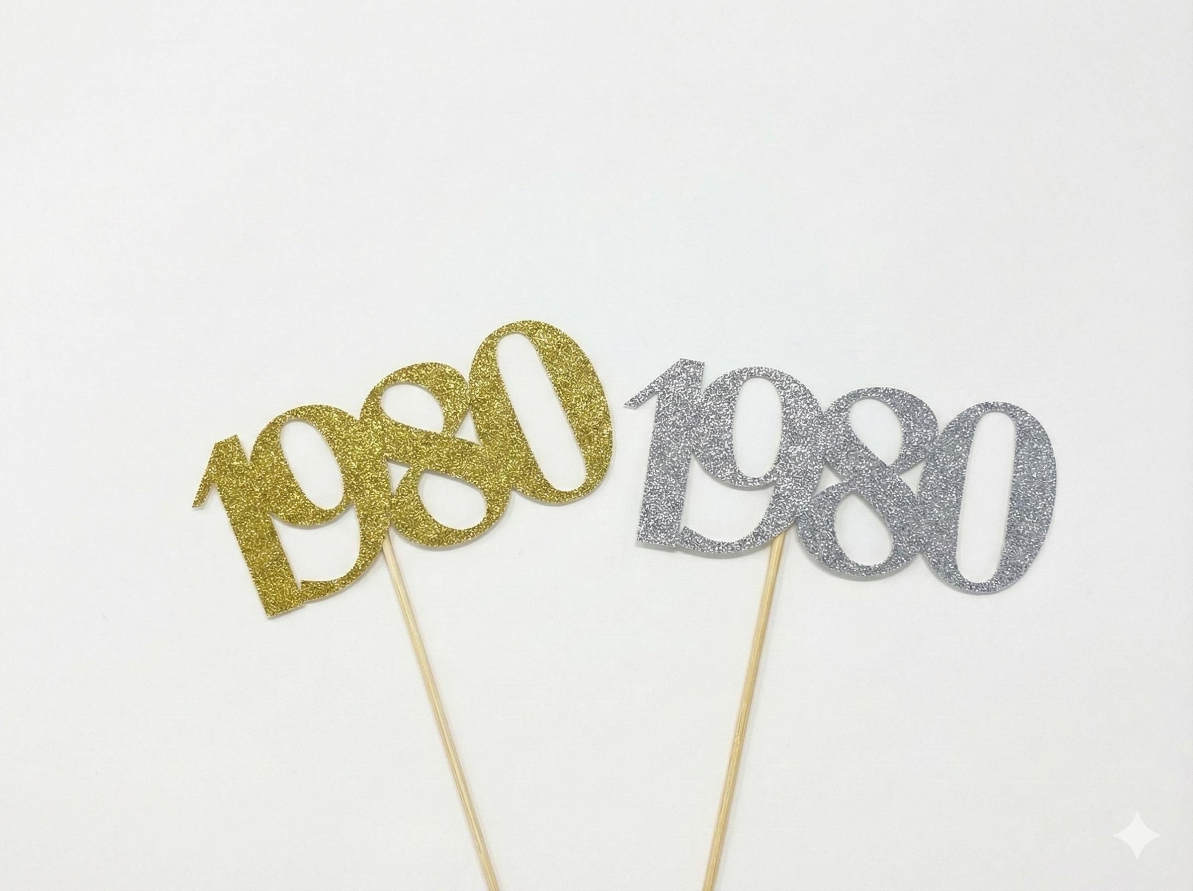 Centerpiece is made of glitter cardstock and attached to a 12 inch stick. We have a single-sided and double-sided(glitter front and back) finish.