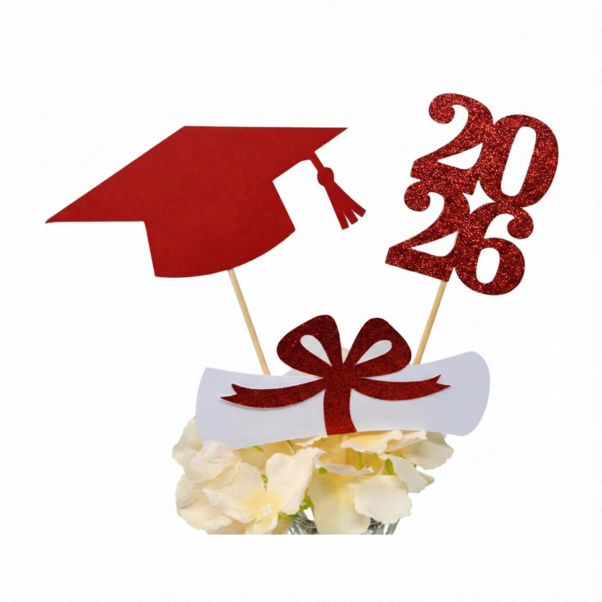 One Set of 3 includes a 2026, a diploma and a grad Cap