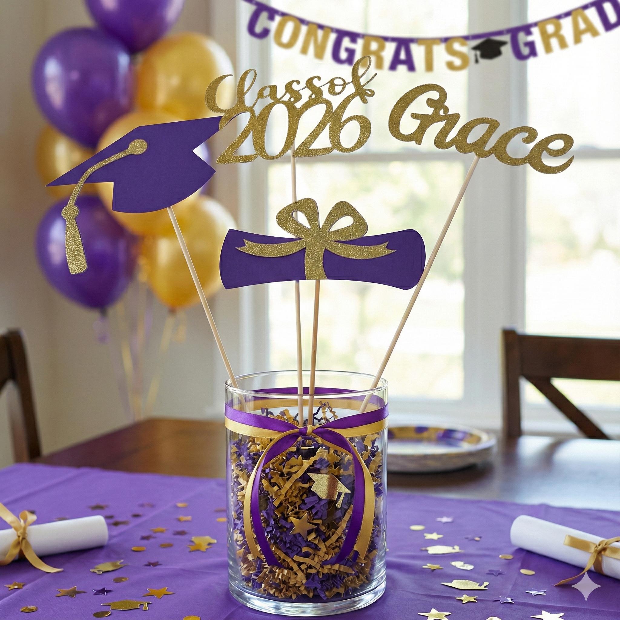 Graduation party decorations 2026, Graduation Centerpiece Sticks, Grad, Cap, Diploma, 2026, custom name centerpiece, Graduation table decor